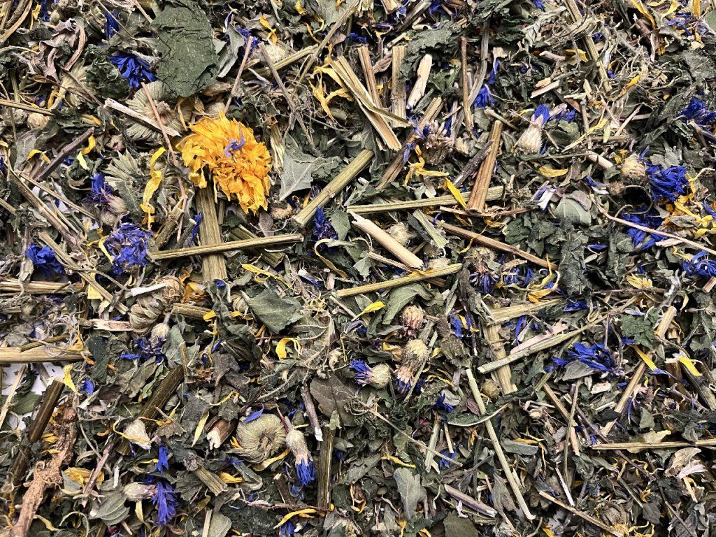 Přírodní bylinná směs s mátou a měsíčkem navržená pro harmonizaci citlivého zažívání a prevenci nadýmání. Podporuje správnou funkci ledvin, posiluje imunitu a je zcela bez obilovin. Ideální každodenní doplněk stravy pro spokojený život vašeho králíčka či hlodavce.