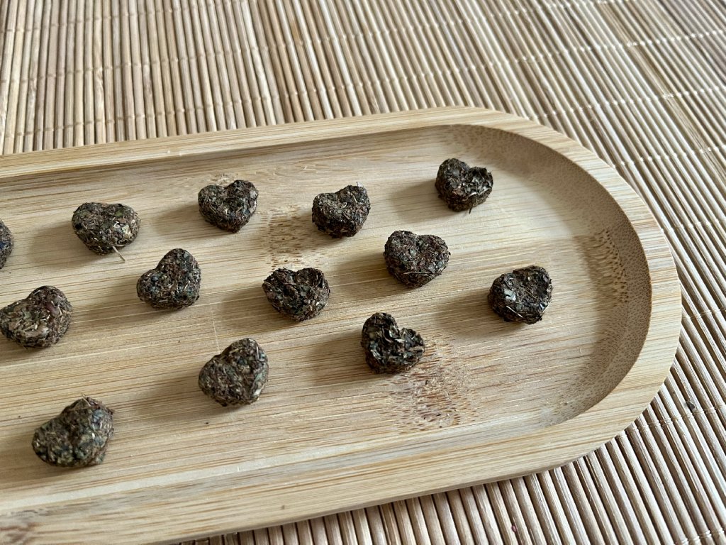 Bezobilná valentýnská srdíčka z lískových listů a levandule jsou jemné bylinné pamlsky ideální i pro citlivější mazlíčky.
