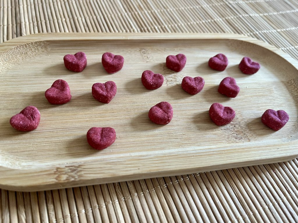 Valentýnská srdíčka z řepy a jablíčka jsou chutné ručně vyráběné pamlsky, které potěší každého mlsného chlupáče. Sladká chuť jablíčka v kombinaci s řepou vytváří ideální valentýnskou dobrotu.